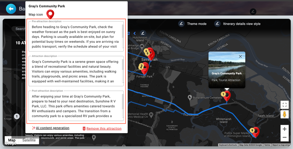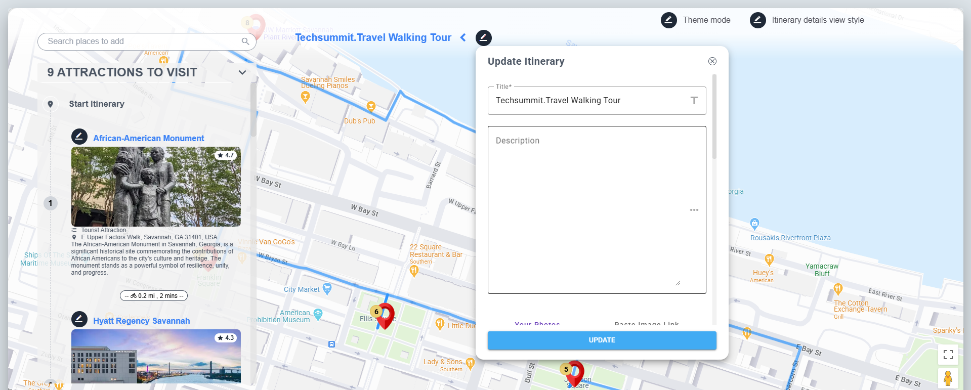 - Add or remove Points of Interest (POIs) directly on the Map Edit View, simplifying real-time itinerary adjustments.