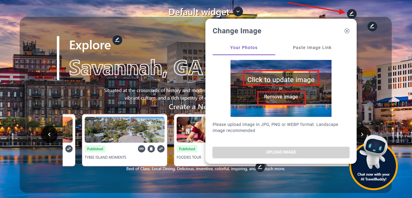 Click the pencil icons to customize the layout of your Itinerary Library. You can update or remove background images and adjust the content box color to align with your brand’s visual style.