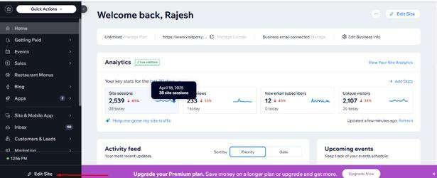 Log in to your Wix Dashboard and click on edit site