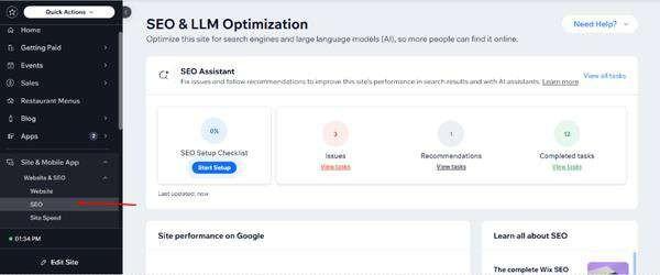 1. Go to Site & Mobile App > SEO