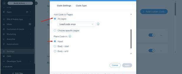 Place it in the Head section and click on Apply.