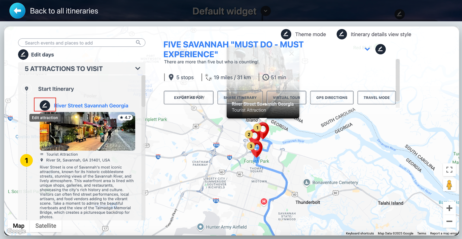 Step 3: Open any itinerary and click "Edit Attraction" on a stop