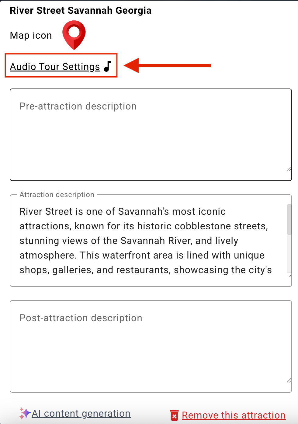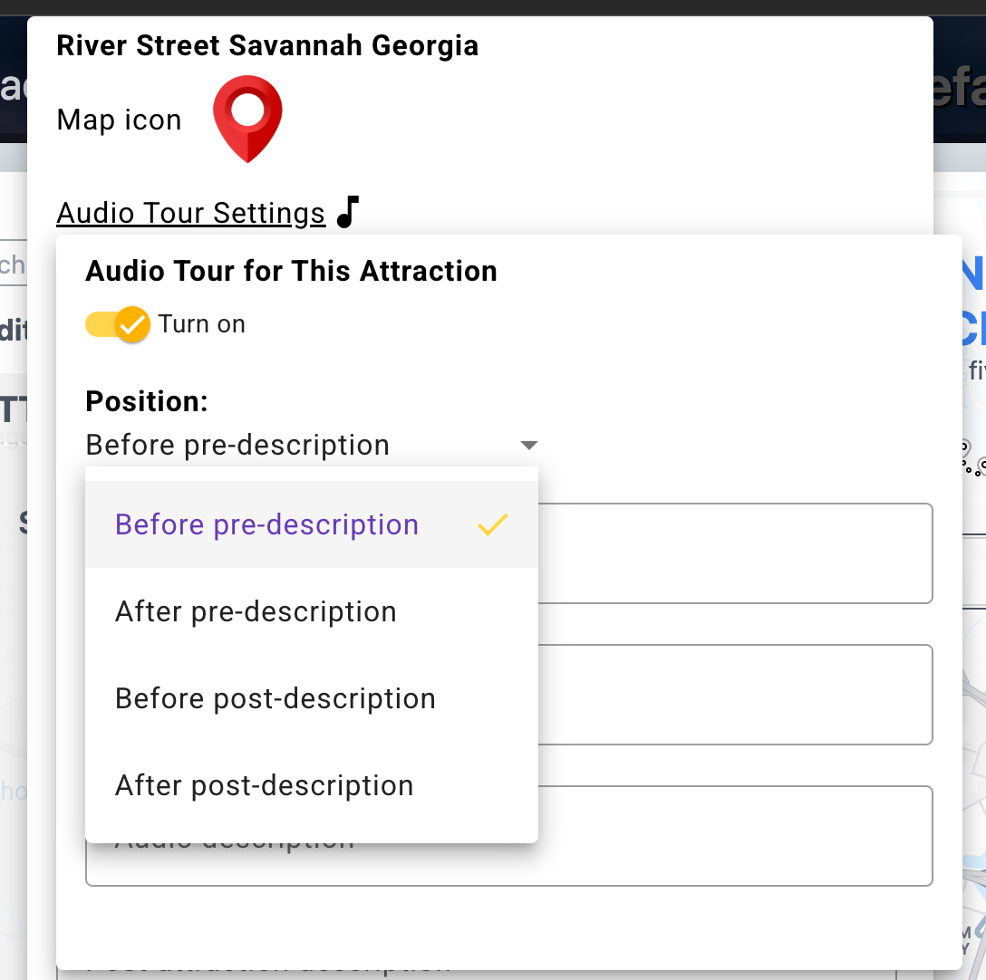 - Step 4: Click “Audio Tour Settings” and enable the toggle